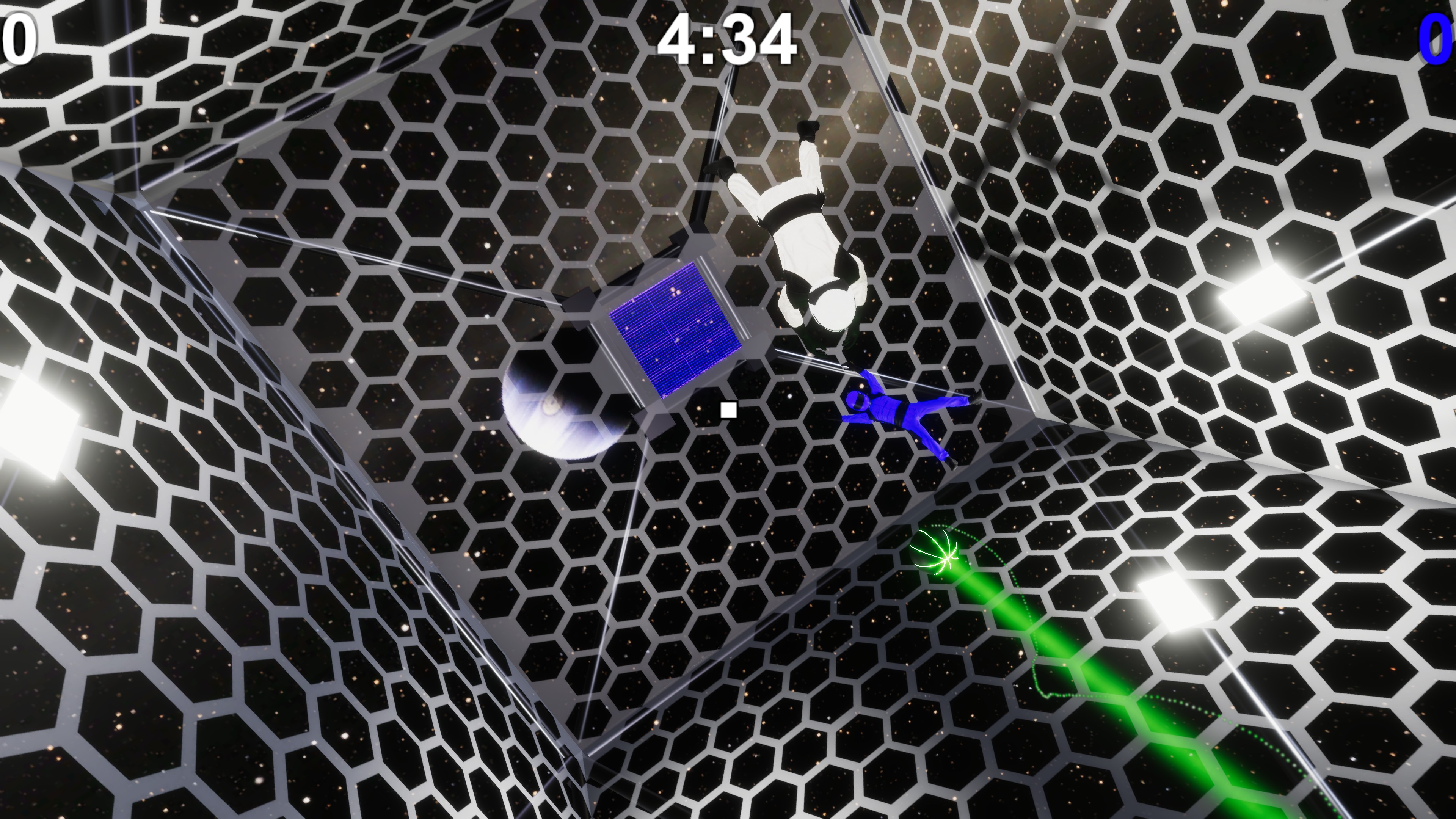 StarBall is 2-on-2 basketball in zero-gravity. Players can progress through career mode against a league full of computer-controlled opposing teams, to win the championship, play locally in split-screen with friends, or play online in a variety of leage settigns, from super-casual to professional.